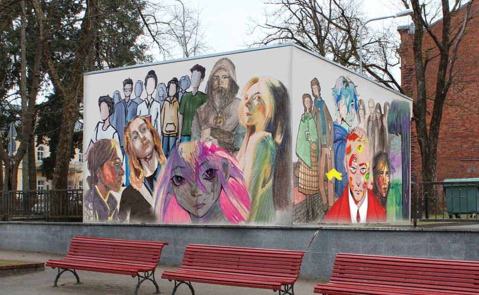 Uz murāļa “Art Cube” Saules skolas Vizuālās mākslas nodaļas 4. kursa audzēkņi attēlo savu laikabiedru portretus – gan reālus, gan iedomātus tēlus. Autoru kopīgi izveidotā murāļa skice, iegūstot reālus apveidus, kļūs arī par skolēnu prakses darbu.
