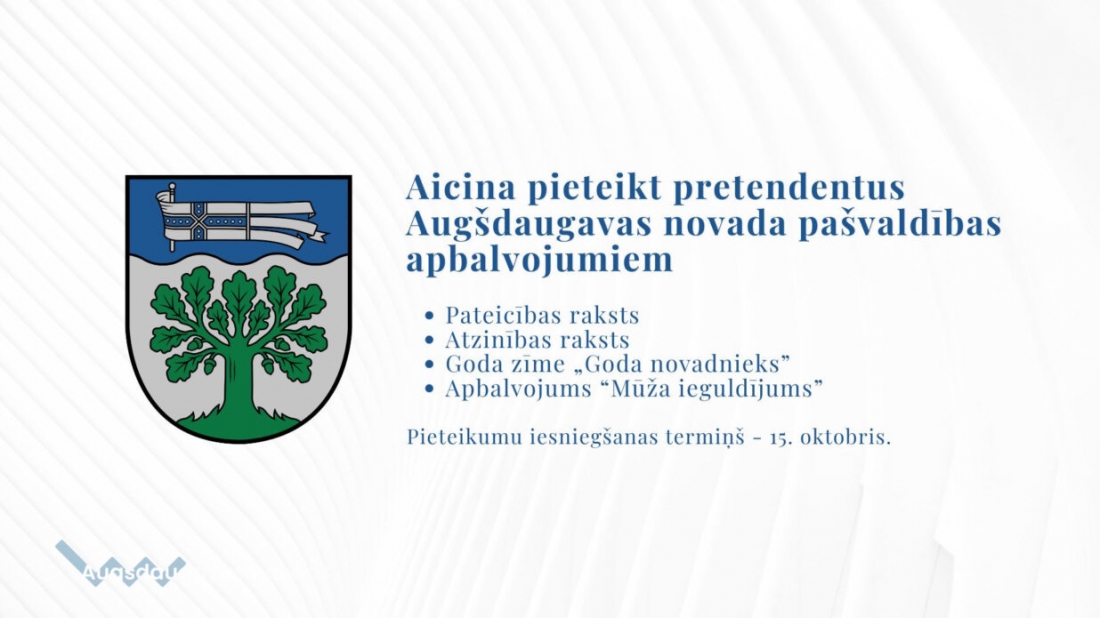 Nolikums par Augšdaugavas novada pašvaldības apbalvojumiem un pieteikuma nosacījumiem pieejams ŠEIT.