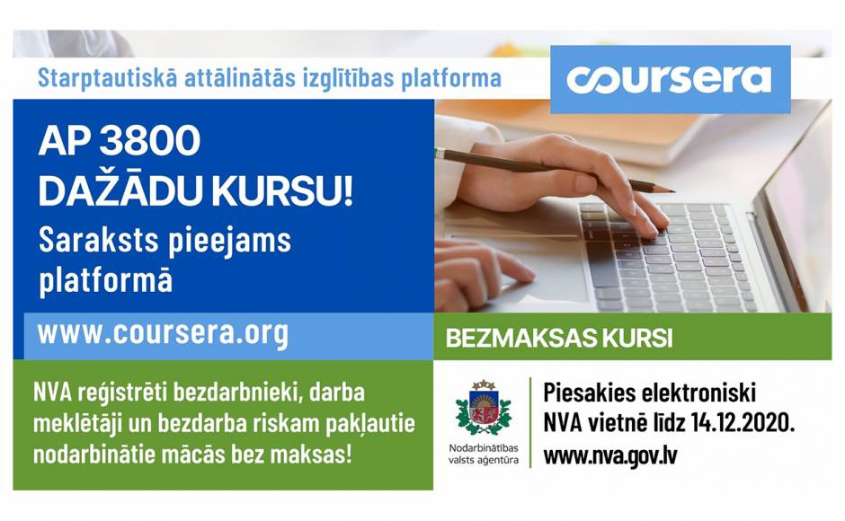 20.11.2020Starptautiska attālinātās izglītības platforma piedāvā 3800 kursus.