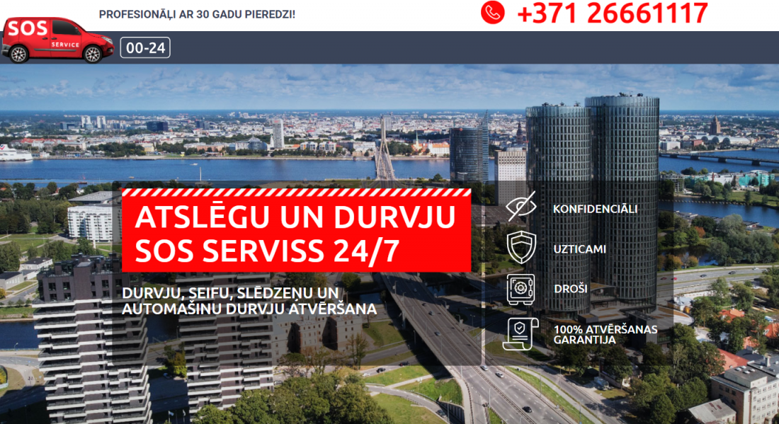 Tiek piedāvāta ne tikai auto atvēršana, bet arī profesionāla mājokļa durvju un seifu atvēršana. Neatkarīgi, kurā diennakts laikā Jums pakalpojums nepieciešams, sazinieties ar Sosservice.lv speciālistiem, zvanot pa tālruni +371 26661117, un problēma tiks atrisināta!